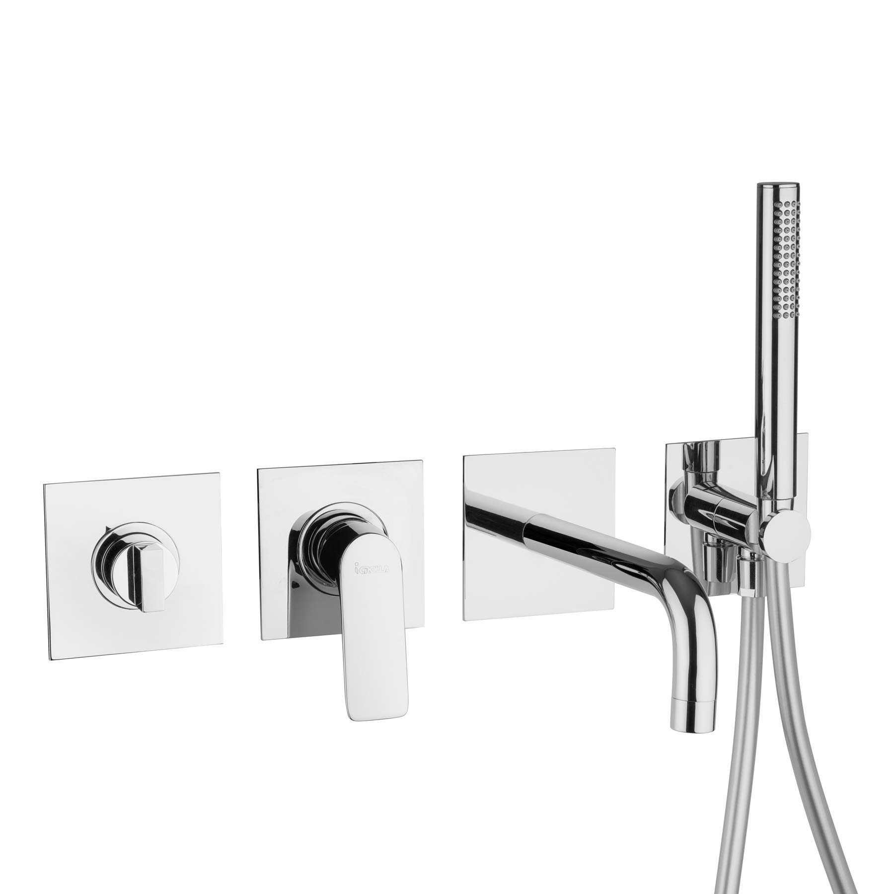 Doccia incasso con piastra quadrata minimalista, completo di parti incasso